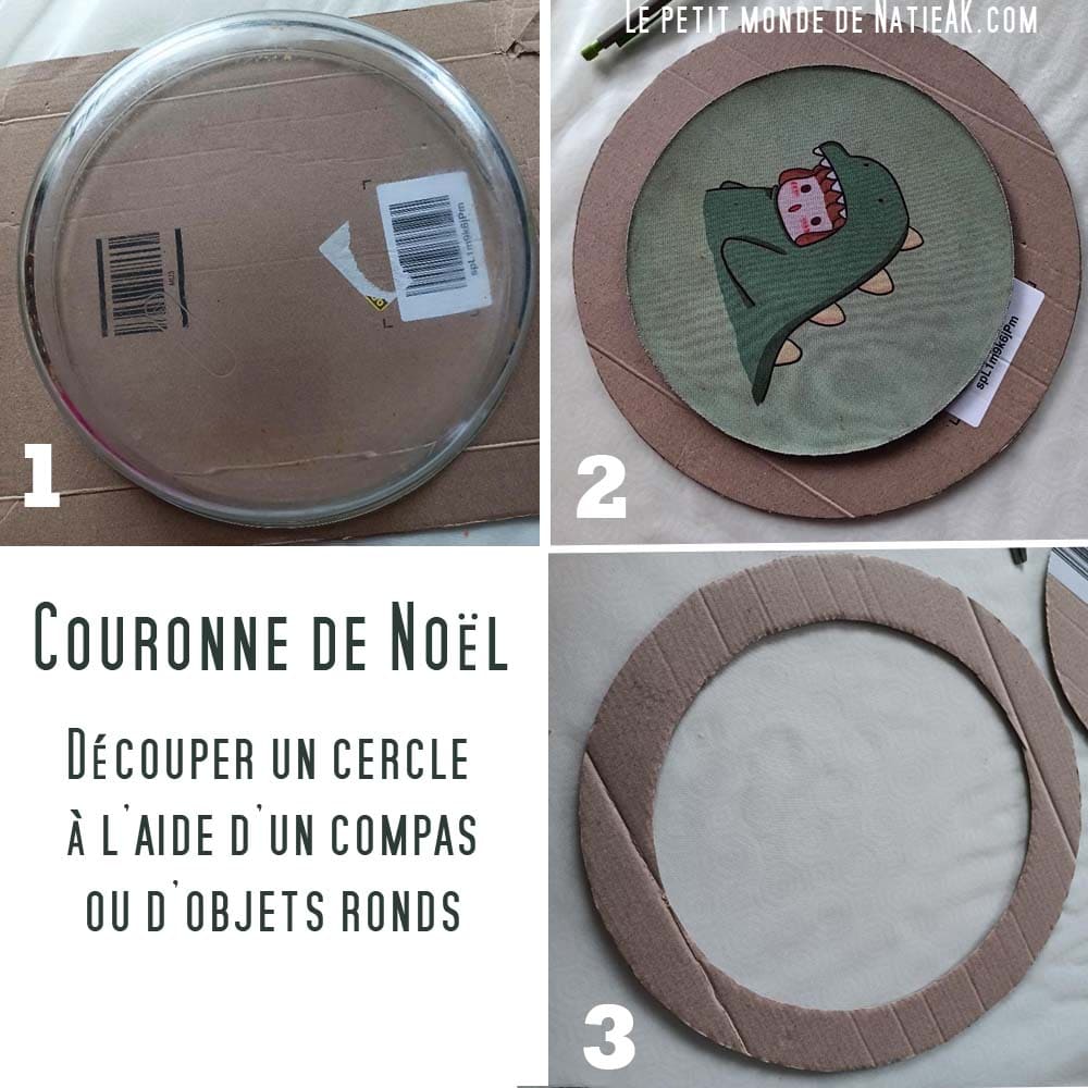 1/La réalisation du cercle parfait est d’une grande simplicité : soit on possède un compas suffisamment grand, soit on utilise un plat à tarte, une assiette ou toute autre objet en fonction de la dimension désirée pour son projet. Pour évider le cercle, j’ai utilisé un tapis de souris.