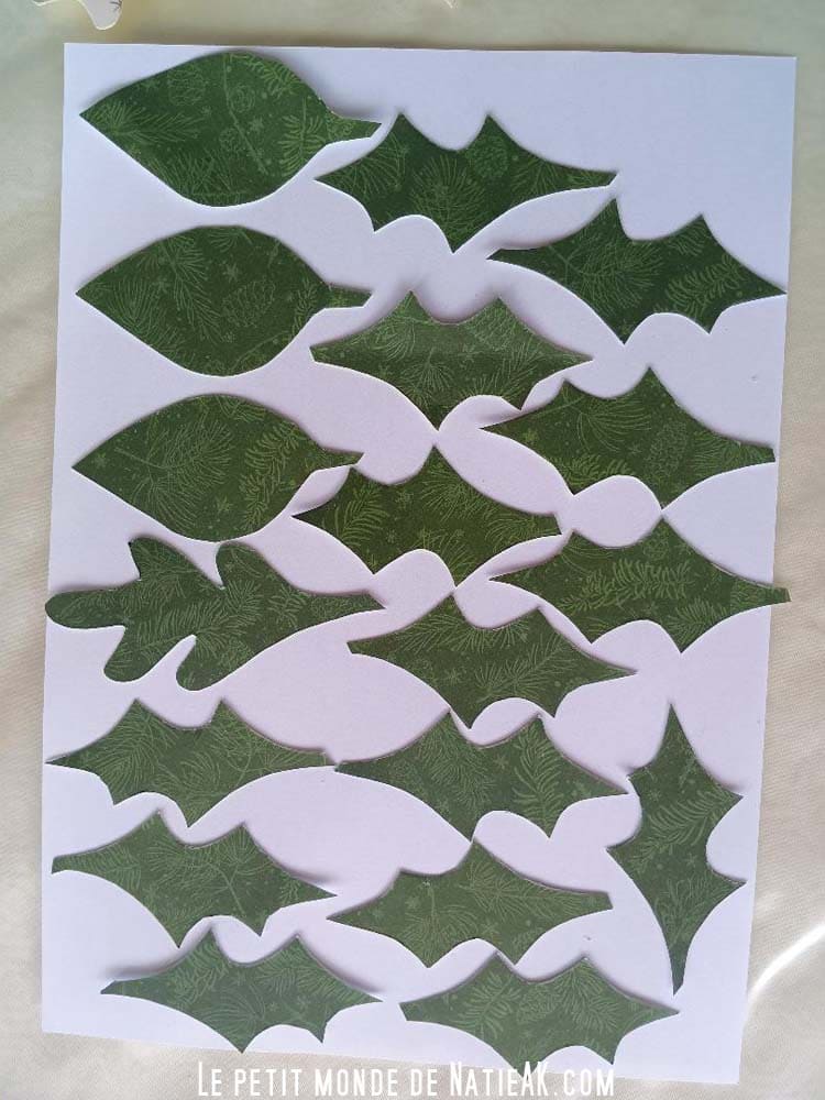 👉Conseil : n’ayant pas de machine à découper, j’ai simplifié au maximum les différents motifs. Pour la découpe du motif « Baies », préférez un petit ciseau. Pour conserver les mêmes dimensions pour un même motif, servez-vous du premier réalisé à main levée comme patron pour les suivants.