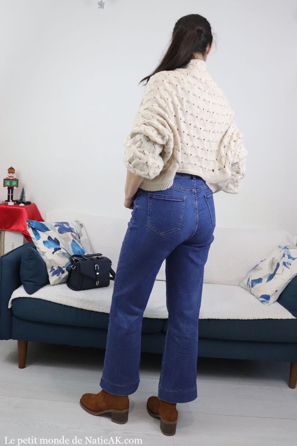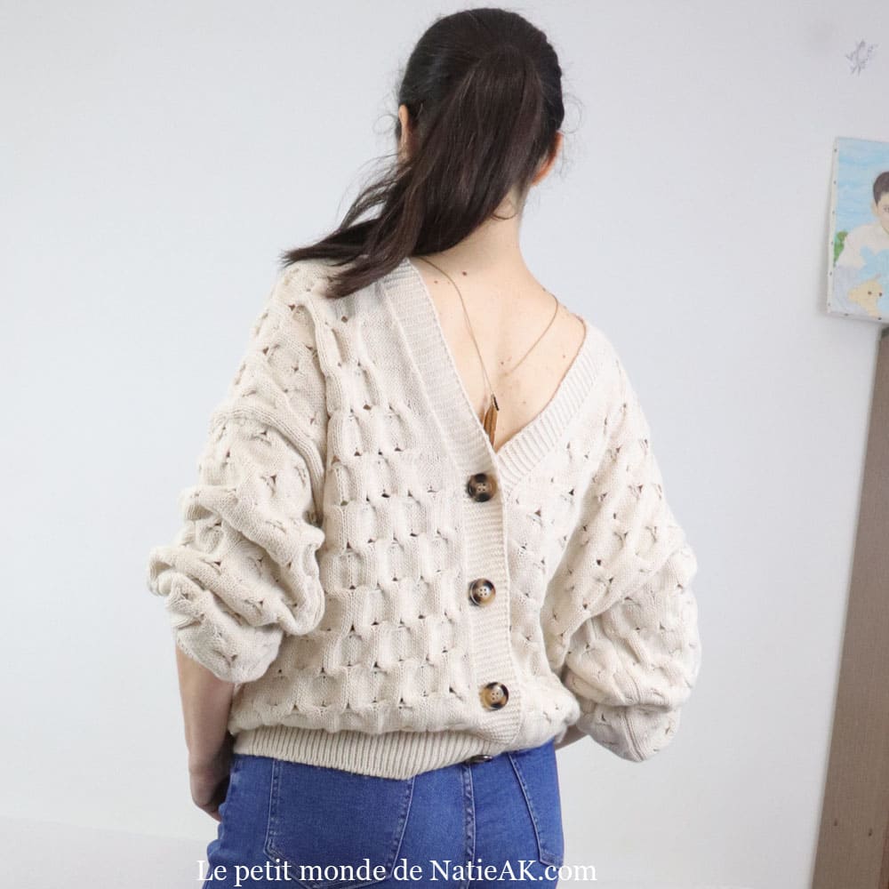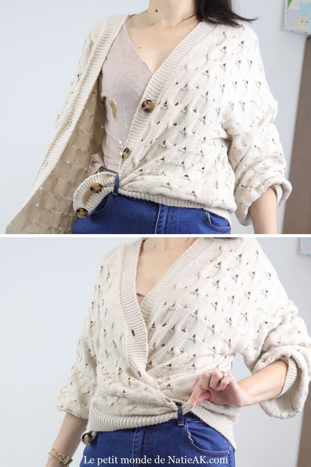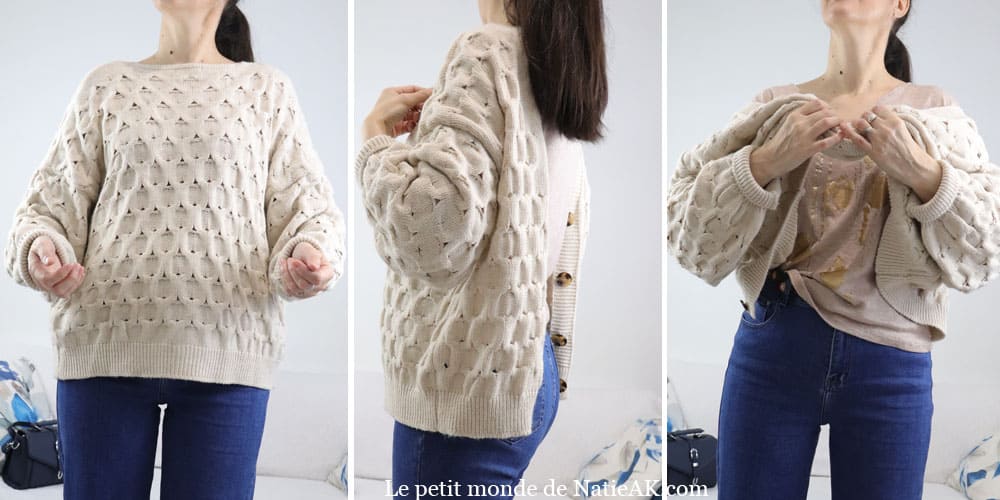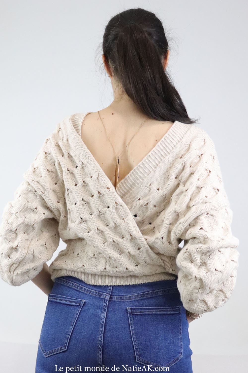 Coucou ! J'adore le gros pull ! J'aime beaucoup porter ce type de pull à l'envers, avec le V dans le dos. Mais c'est très joli croisé également 🙂
