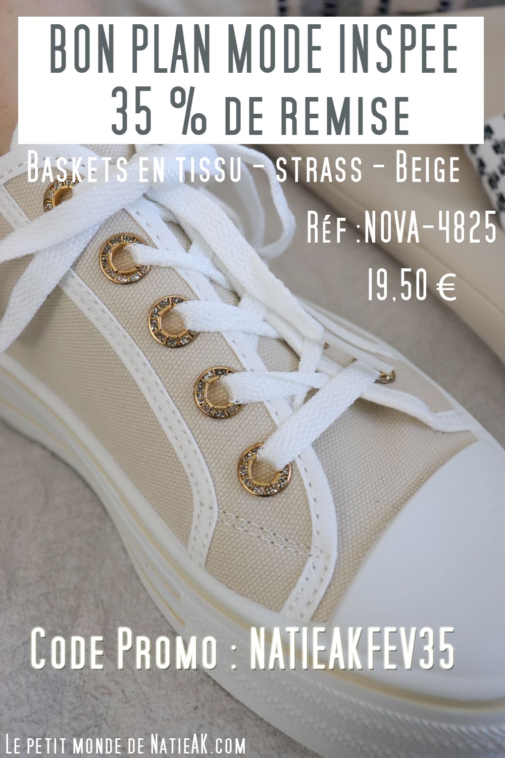 ↪ Référence Baskets en tissu, beige NOVA-4825 (existe en blanc, taupe et noir).