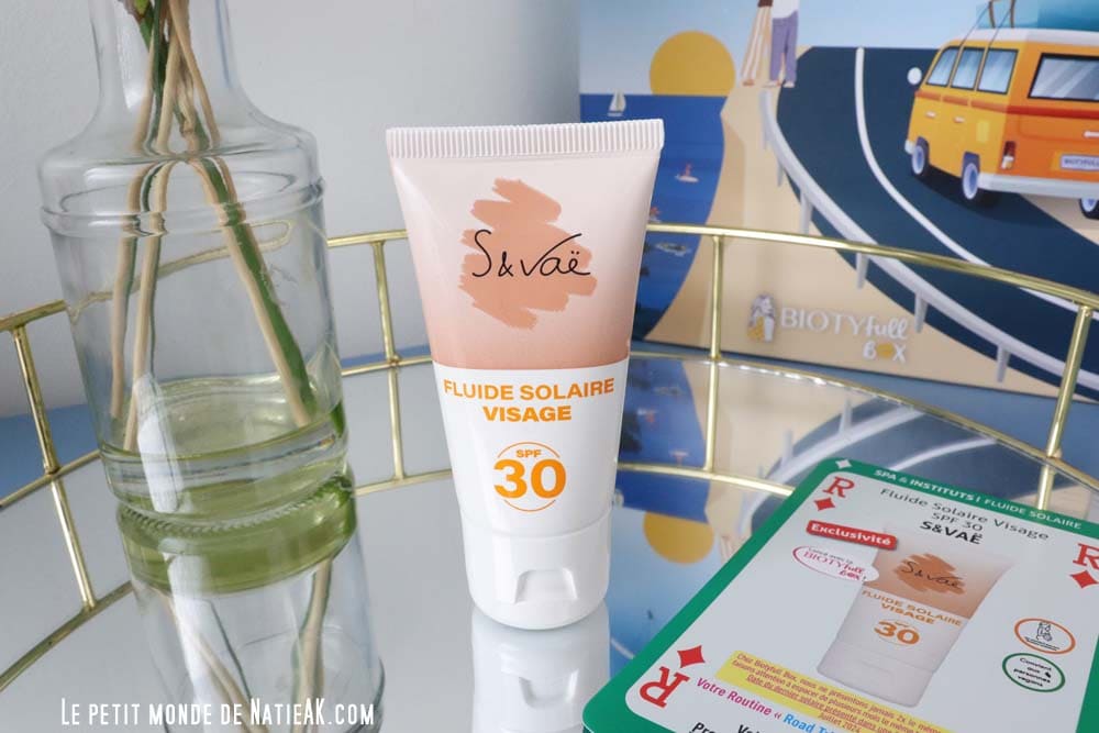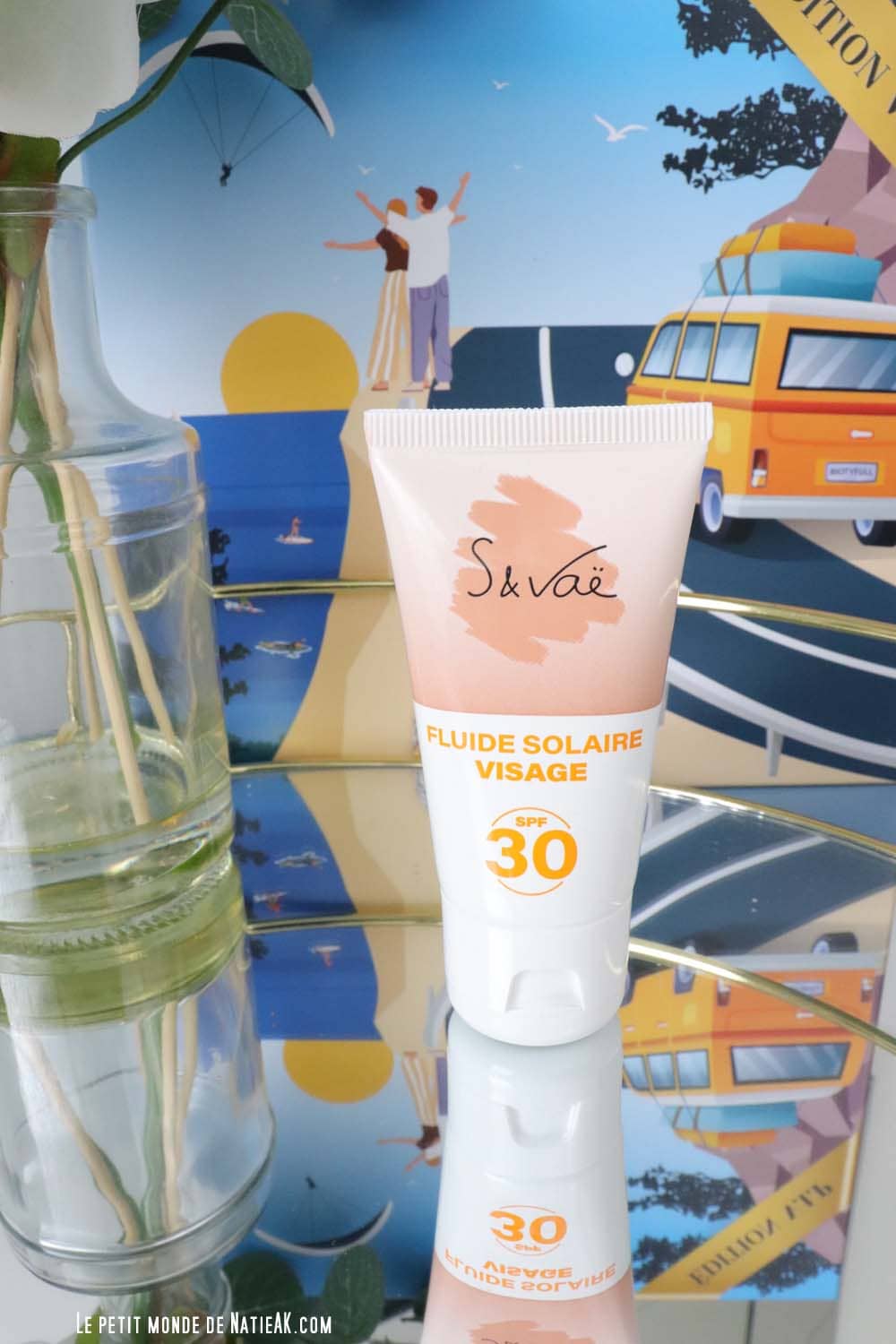 Afin de protéger le visage du soleil, ce fluide solaire de S&Vaë propose un SPF de 30 à base de filtres organiques respectueux de l’écosystème marin. Personnellement, je suis ravie de ce choix, car je privilégie les filtres organiques qui sont nettement plus protecteurs que les filtres minéraux que l’on retrouve en bio. Je vous invite d’ailleurs à relire mon article sur les 👉 4 mauvaises habitudes en beauté.