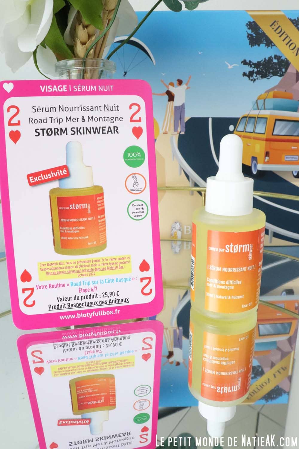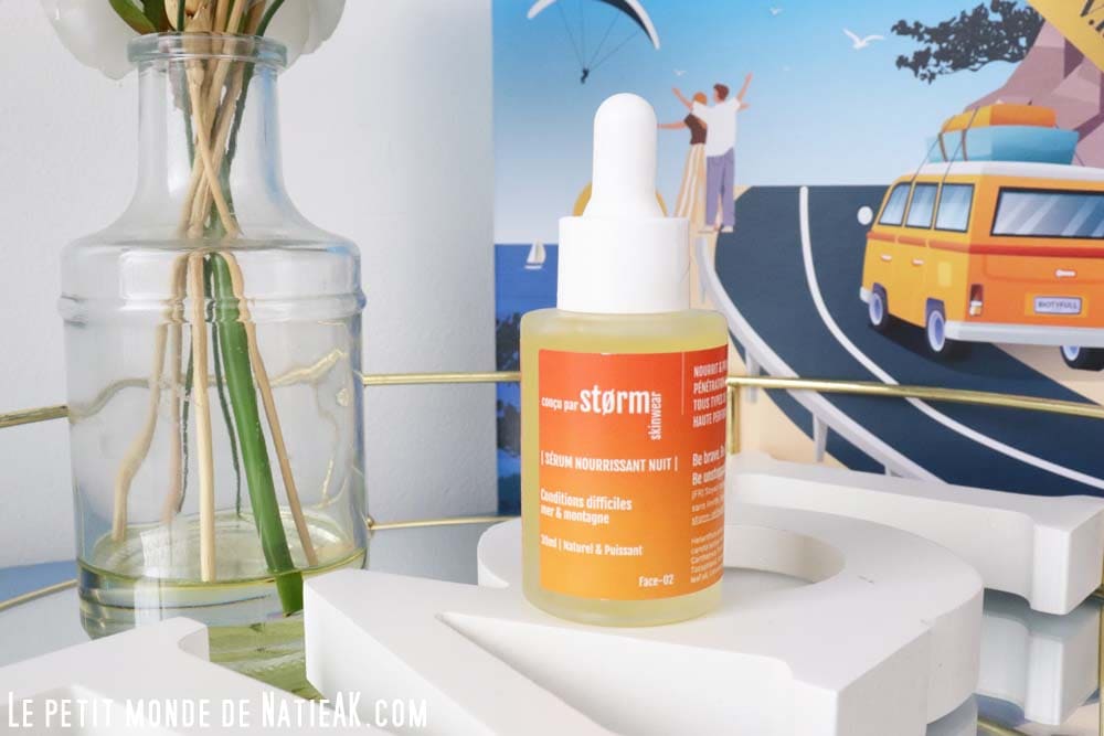 Ce sérum nourrissant nuit est justement particulièrement recommandé lors d’un road Trip au bord de la mer ou à la montagne. Sa richesse en huiles végétales et en actifs naturels va à la fois nourrir et apaiser la peau pour maintenir un bon équilibre cutanée : la peau est alors mieux armée pour lutter contre les agressions extérieurs grâce au macérat huileux de carotte, à l’huile de carthame ainsi que les huiles essentielles de romarin.