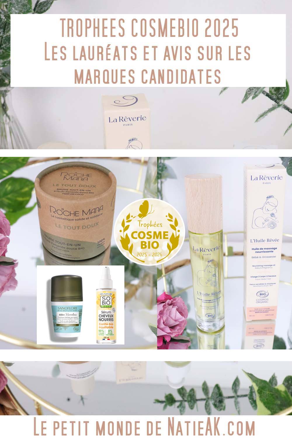 Voici les 4 Lauréats des Trophées Cosmébio 2025-2026, des marques biologiques récompensées lors de la 11e édition : Roche Mara et La Rêverie dans la catégorie Jeunes pousses, et Sanoflore et So’bio Etic dans la catégorie Innovation Durable. Je vous partage également des avis sur 3 marques candidats pour ce prestigieux prix.