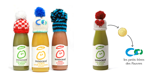 La boisson Innocent lance son Opération Mets ton bonnet 2015. Le but de cette démarche caritarive est de tricoter de petits bonnets qui coifferont les petites bouteilles de smoothies Innocent en janvier 2016. Opération Mets ton bonnet d’Innocent ⇒ On aide…